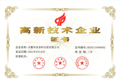 2017年获评“2016年度香料香精优秀品牌企业”