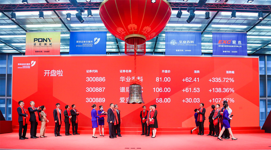 安庆市市长陈冰冰、深圳证券交易所副总经理李鸣钟、省地方金融监管局副局长程钢、中国香料香精化妆品工业协会理事长陈少军、安庆市政府秘书长江兴代、潜山市领导张劲松、梅耐雪、黄银枝、郭玉晟、余永灿等出席上市仪式。应邀出席上市仪式的嘉宾还有公司大客户、供应商代表及上市中介机构相关人员。