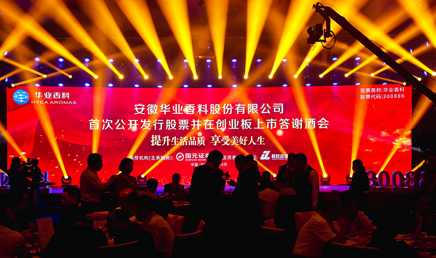 此前,在9月15日晚,k1体育39152十年品牌还在深圳星河丽思卡尔顿酒店举行了上市答谢酒会。香料香精行业协会领导、公司大客户、供应商代表及上市中介机构相关人员应邀参加酒会。