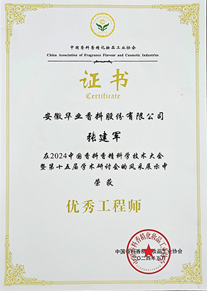k1体育39152十年品牌公司作为中国香料香精行业的佼佼者,一直致力于科技创新和产品研发。凭借着对香料香精行业的热爱和专注,以及对技术的深入研究和探索,我司张建军、叶名可二位工程师分别荣获了“优秀工程师”和“新锐工程师”荣誉。获得殊荣的二位工程师纷纷表示,他们将继续努力,不断创新,为公司的发展和行业的进步贡献自己的力量。