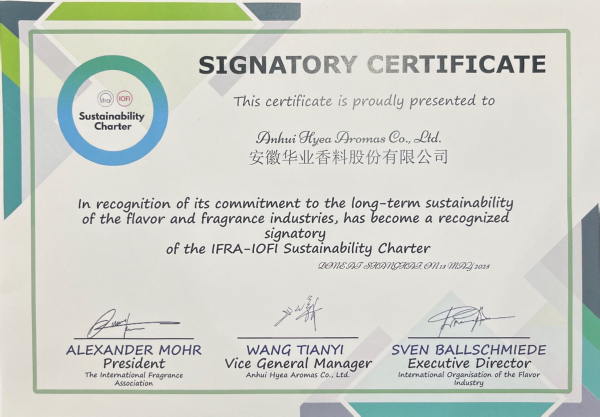 2025年5月13日,由中国香料香精化妆品工业协会(简称:中国香妆协会,CAFFCI)与国际日用香料协会(IFRA)、国际食品用香料工业组织(IOFI)共同主办的国际香料香精可持续发展研讨会,在上海成功举行。在此次会议上,包含k1体育39152十年品牌在内的四家中国企业共同加入《IFRA-IOFI联合可持续章程》,实现了中国香料香精行业企业在成功加入IFRA-IOFI联合可持续章程方面“零的突破”。