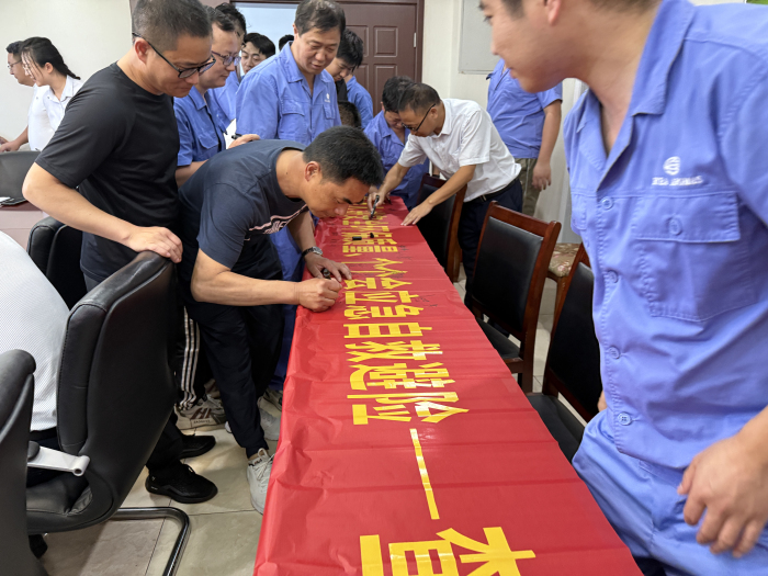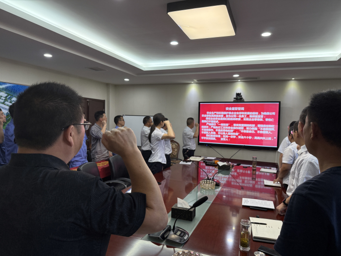 随后,在生产部经理带领下,全体员工进行了铿锵有力的安全宣誓:“安全生产和环境保护是企业生存和发展的基础……身为公司一名员工,我郑重宣誓……”。誓言铮铮,响彻会场,将大会氛围推向高潮。